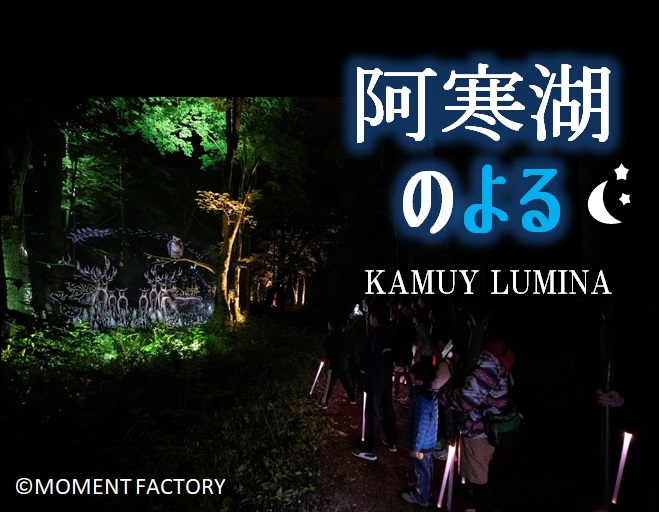 阿寒摩周国立公園内阿寒湖畔の夜の森を舞台に、プロジェクションマッピングやシノグラフィー(光と音の舞台装置)など、最新の技術で様々なデジタル演出が仕掛けられた夜の森を1.2キロの道のりを散策しながら、”自然との共生”の大切さを伝えるアイヌの物語を追体験する新感覚の体験型観光アトラクションです。