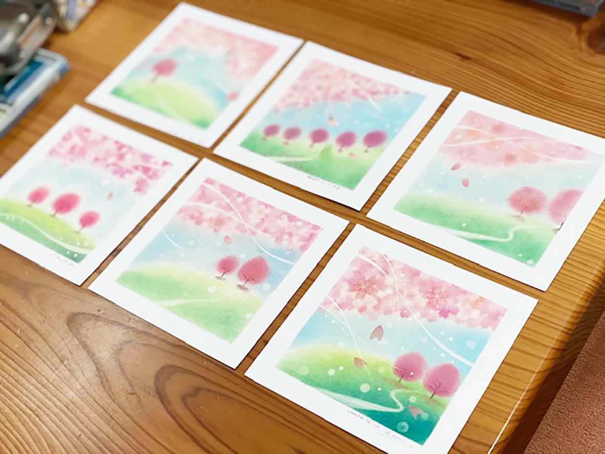 小道具を使いながらひたすら桜の花びらを描いていきます。具体的な方法はぜひ教室で体験を!!