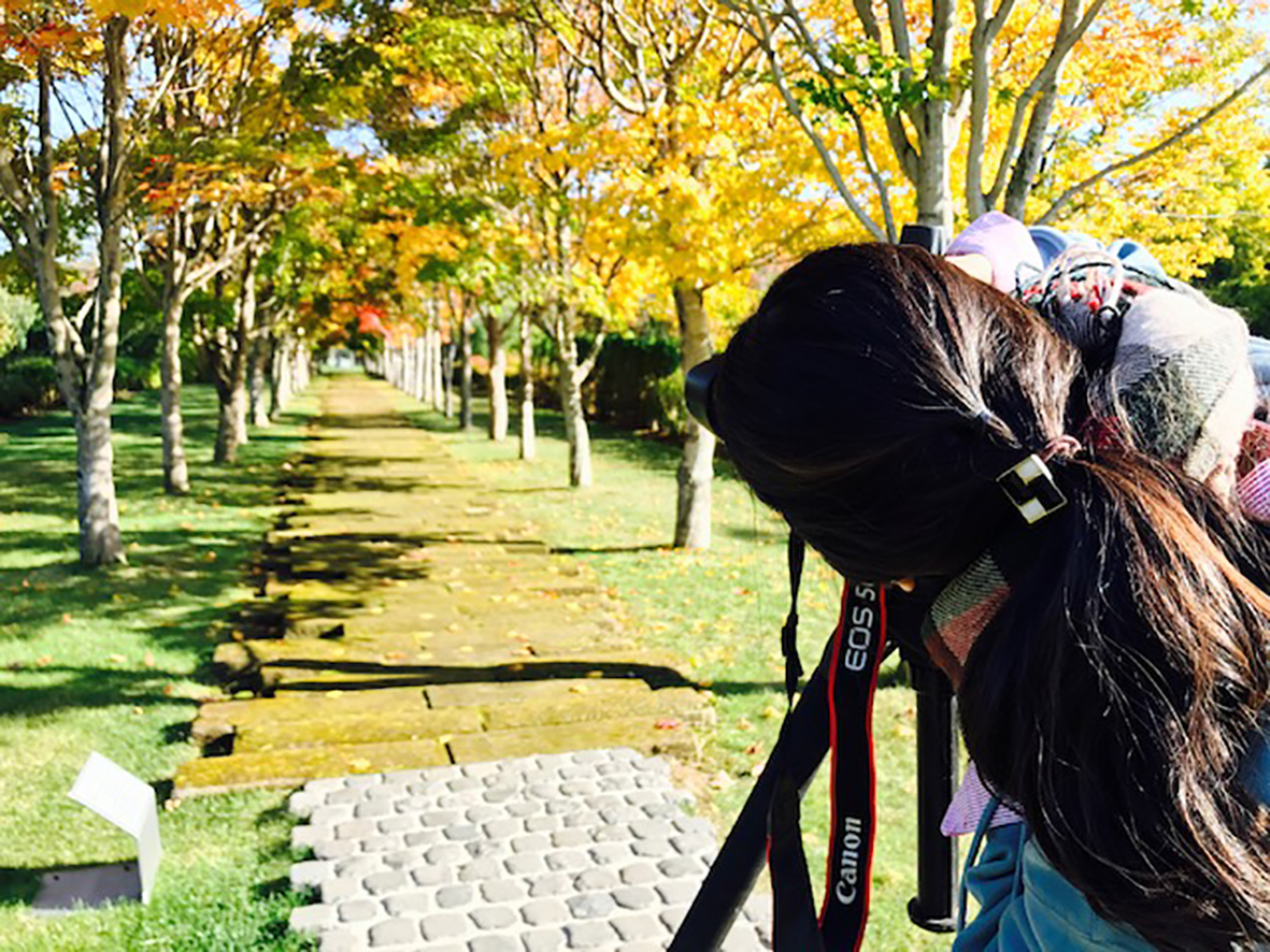 では。早速一つ目の撮影スポットをご紹介しましょう。十勝の皆様ならご存知の方も多い『六花亭 中札内美術村』。今のシーズンはここの並木の紅葉が綺麗、という事でNさんおすすめの場所です。