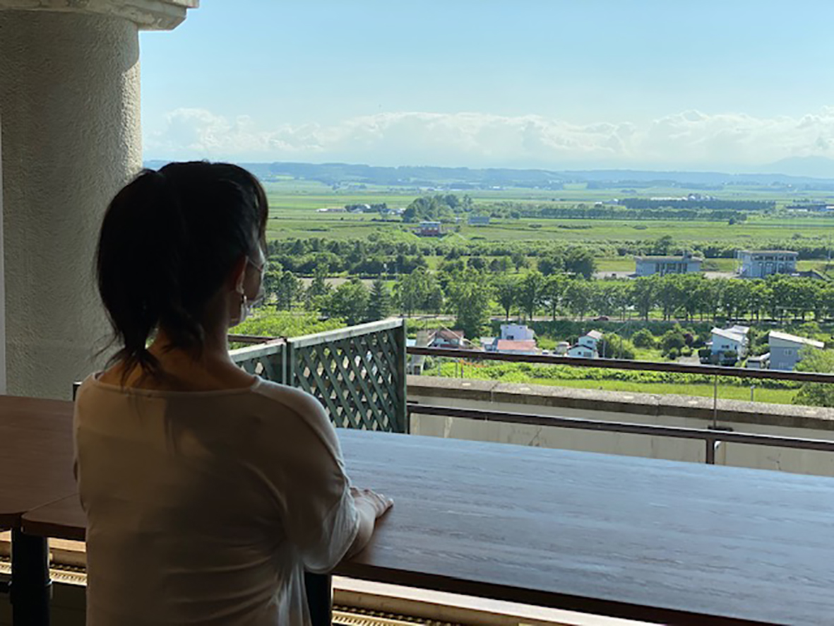 カウンターからも池田町や山脈が望めます。
